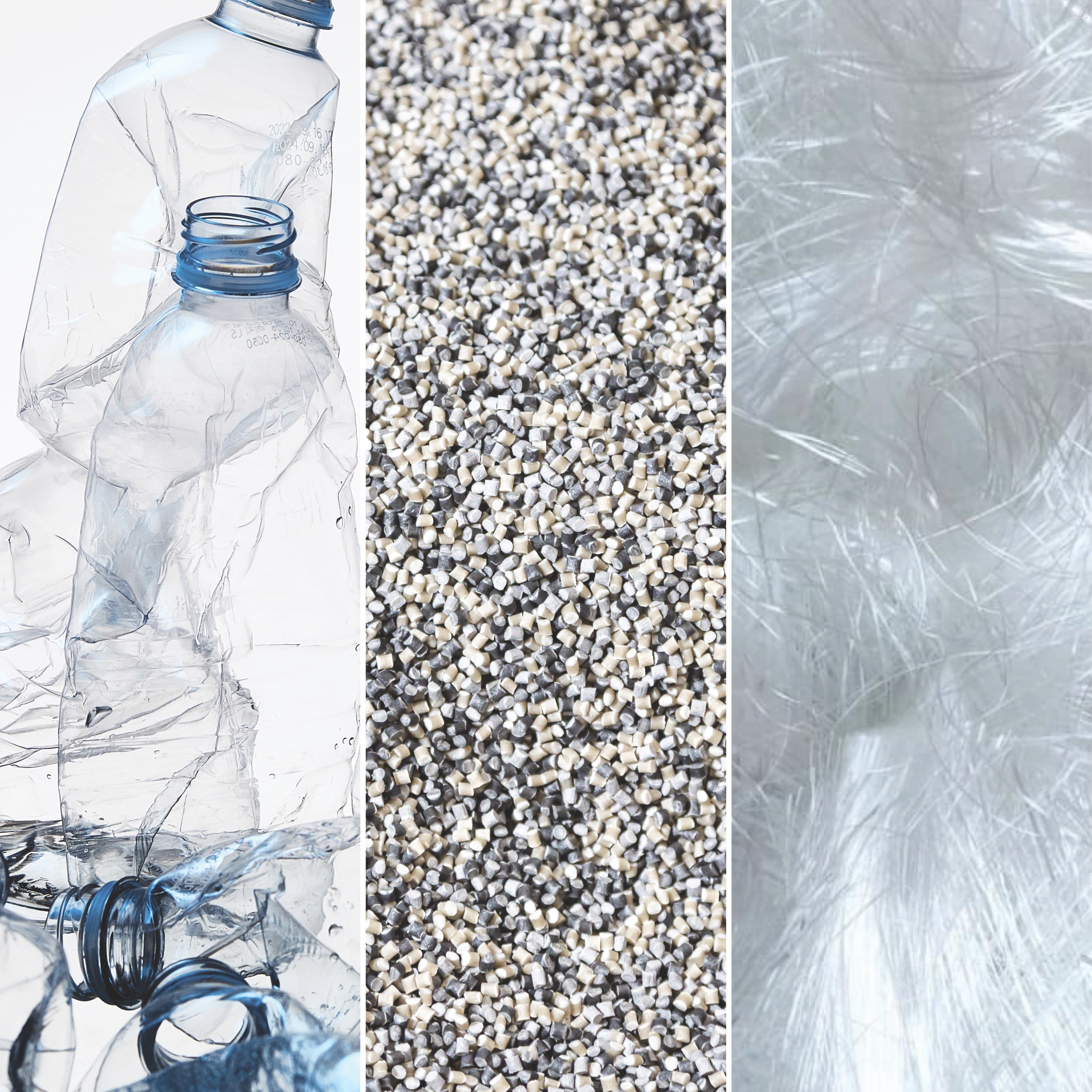 Our recycled polyester is created using a Global Recycled Standard (GRS)–certified process that begins with collecting and cleaning post-consumer PET bottles. The bottles are chopped into small flakes, melted down, and spun into renewed polyester fibers. This process gives new purpose to a product that would otherwise end up as waste — and when it becomes part of a North Star blanket, that waste is transformed into something made to last a lifetime.